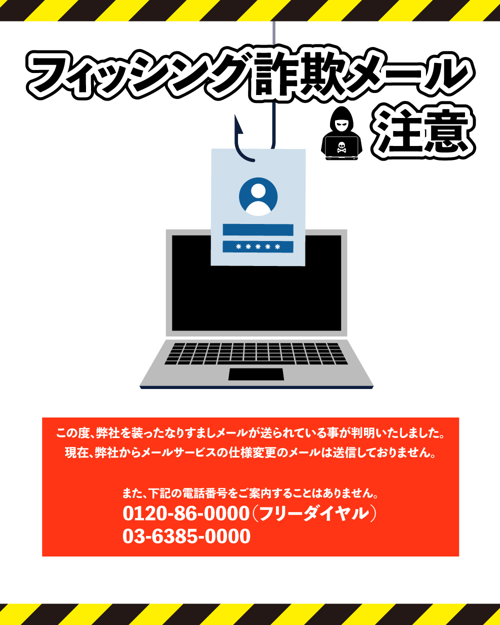弊社から「メールサービスの仕様変更」や「アカウントの更新」などを理由に、お客様の個人情報を求めるメールをお送りすることはありません。
